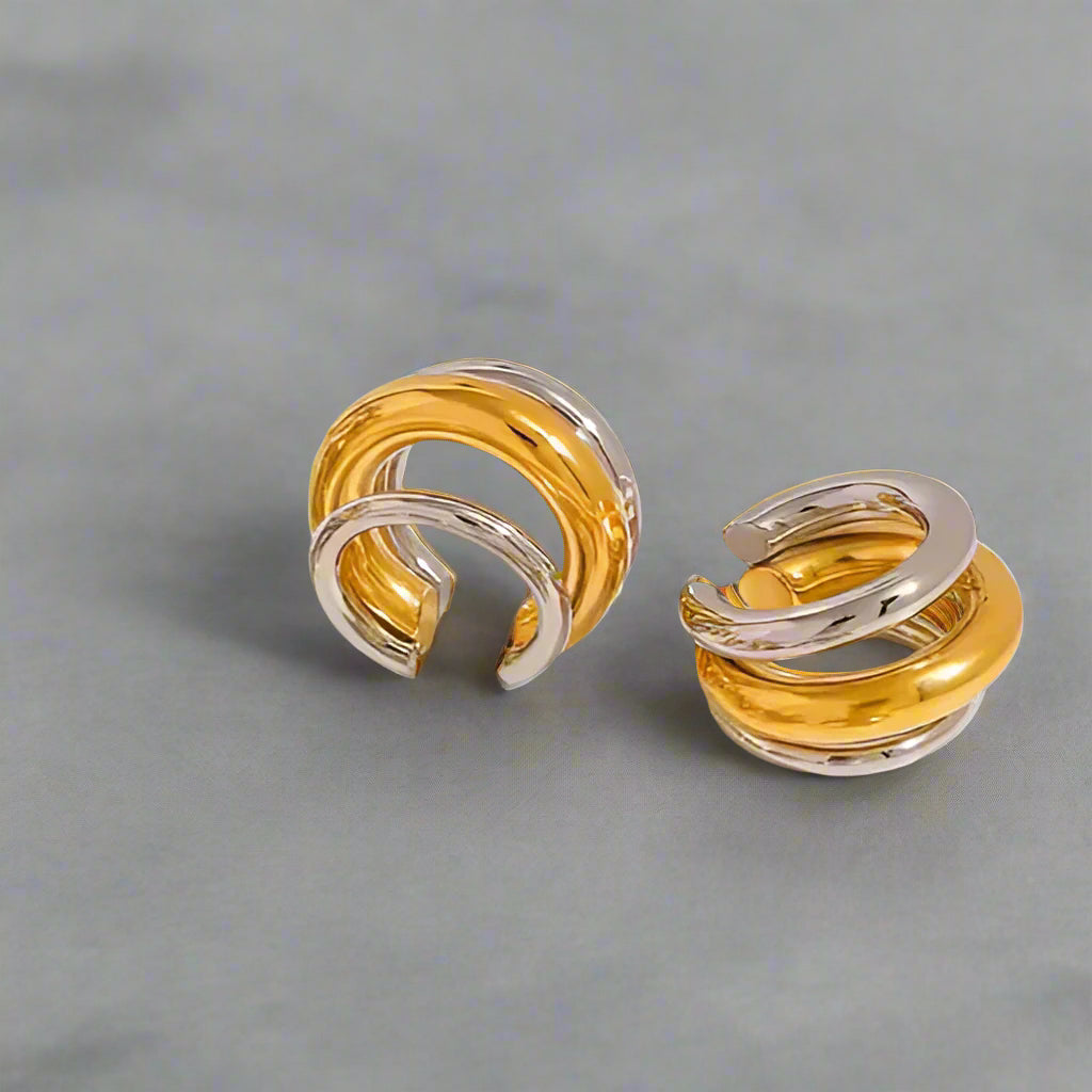 Unleash your wild side with our Double Dare Hoops! These chunky earrings feature a bold blend of 18K PVD gold and silver stainless steel, perfect for adding some edge to any outfit. Clip them on for a wild night out or rock them as a statement piece during the day!